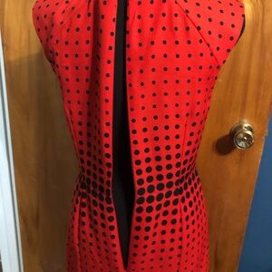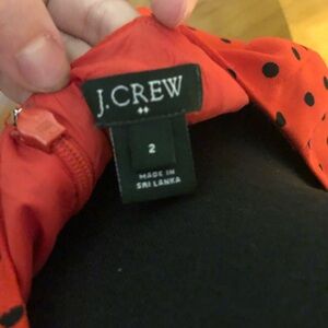 Elegant red polka dot dress by J. Crew. Perfect for any occasion, this dress combines classic design with modern flair. The bold red color and playful polka dots make it a standout piece in any wardrobe.