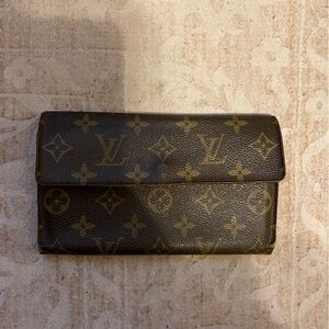 Classic Louis Vuitton wallet. Features iconic monogram pattern. Compact and stylish. Has some wear as seen in photos. Button does not close properly. Needs some love. Please message with any questions :)