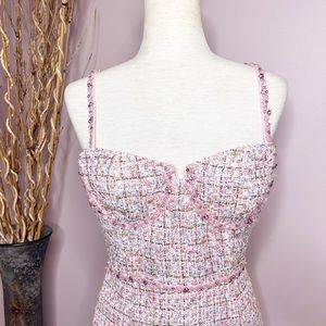 NWT Self Portrait Diamonte’ detail boucle mini dress sz 6