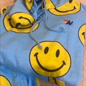 Aviator nation Blue Hoodie and Sweatpants with Smiley Faces