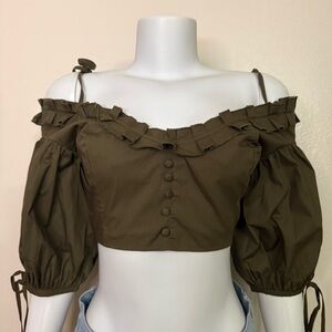 tags for exposure: boho bohemian contemporary beach floral spring summer vacation vacay staycation hippie monokini built in bikini floral print ruffle ruffled Pool Las Vegas outfits cruise Coachella spring summer trends fashion sheer pleated chiffon ruffle midriff cutout cutout floral puff sleeve printed ruffled deep v deep v draped brown long sleeve maxi tropical print floral puff sleeve floral ruffle brown printed