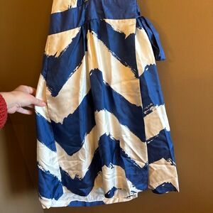 Features: Sleeveless, Chevron pattern, Blue and white, Collared, Tie-waist