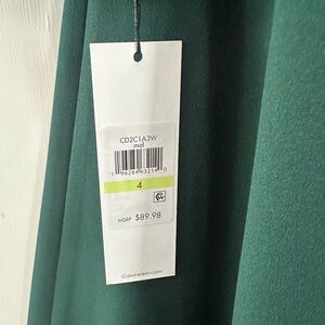 Calvin Klein Green Smocked A-line Dress with Long Bishop Sleeves