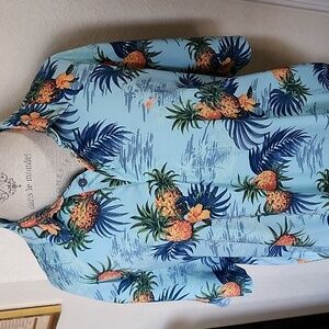 Embrace a tropical vibe with this stylish blue shirt. Perfect for casual outings or a.round of golf in nice pre-owned condition. UPF 30 sun protection