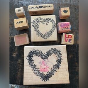 Lot of 9 Rubber Stamps Love Hearts Valentine’s Day. Used, normal wear.
