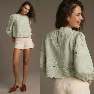 Anthropologie The Lainie Long-Sleeve Lace Cutwork Blouse Size XS NWOT $148
