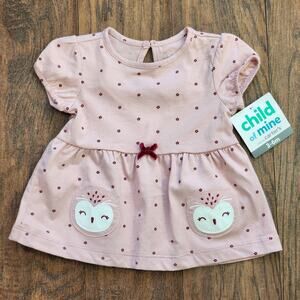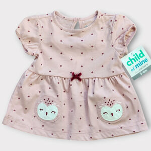Carter's Baby Girl Dress 3-6 Months Pink Floral Print Owls Puff Short Sleeve