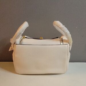 White Leather Doctor Bag w/ Gold Hardware NWT This white leather handbag and its sleek design with neutral color make it a versatile addition to your wardrobe. it's considered a mini but is a medium-sized bag measuring at 10 x 7.5 x 5.5