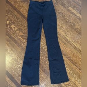 Stylish black leggings with a flared design. Perfect for yoga or casual wear. Features subtle branding on the leg.