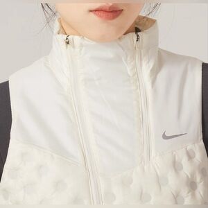 “The Nike Women's Therma-FIT ADV Repel AeroLoft Running Vest is designed for cold routes and delivers strategic warmth in a lightweight package. It has soft light puffy panels on the front and advanced heat-regulating technology to help manage your body's natural heat. It also has a front zipper vent, a drop-tail design, and a water-repellent finish for light rain.”