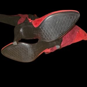 The slim elongated silhouettes of the Rialto Carpio colorblocked over-the-knee boots feature a trio of faux-suede shades in varied shapes to bring multifaceted flair to every step.