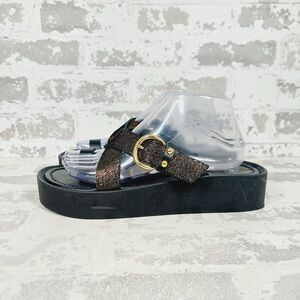 New Marc Fisher LTD Reanna Gold Leather Braided Flat Sandal X71