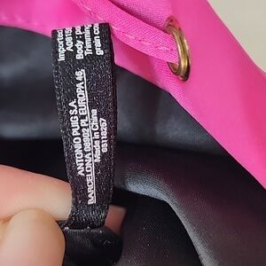 Drawstring closure. Pink clean exterior. Black clean interior. Excellent condition. New without tags.