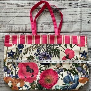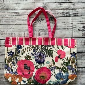 This stylish floral canvas tote bag features vibrant pink accents, perfect for adding a pop of color to any outfit. Ideal for everyday use, it combines functionality with a chic design.