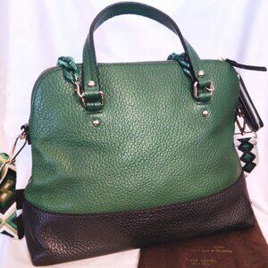 Kate Spade Lg Pebbled Leather Maise Bowler Satchel in Bottle & Black EUC, + NWOT Coin Purse + Guitar Strap + Chain Handles + Logo Dust Bag, Total Retail $548.