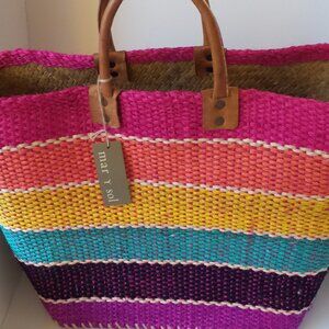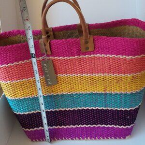 New with tags Mar Y Sol capri tote in rainbow multi. This colorway is no longer available. Handmade. Leather handles, interior pocket. Great for groceries or the beach!
