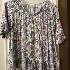 Stylish and comfortable blue with brown pattern top perfect for any occasion. Features a unique design with brown tassels. Ideal for pairing with jeans or leggings.