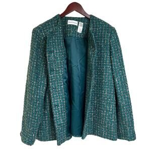 NWT Alfred Dunner Teal Green Tweed Blazer Jacket Office Career Artsy size 16