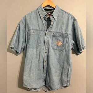 HUK BLUE FLANNEL BUTTON UP LARGE