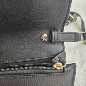 This stylish black crossbody bag features a sleek rectangular shape and is crafted from high-quality leather. It includes a convenient flap closure and an adjustable shoulder strap for versatile wear.