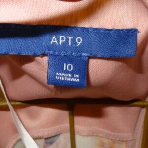 New without tags, very pretty Apt. 9 pink floral dress with zipper at the back. It is a size10, it measures 18" laid flat from arm pit to arm pit and is 40" in length from shoulder to hem. Super cute dress, very comfy and flattering. Material content in photos.