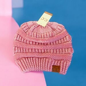 Stylish Dusty Rose Metallic knit beanie by C.C. Soft and cozy. Perfect for chilly days.