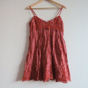 URBAN OUTFITTERS Jamie Embroidered Babydoll Dress Boho in Terracotta - Size S