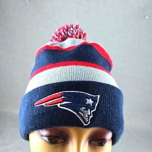 Patriots Football Pom Pom Winter Hat Red White Blue Stripe..men's hat..New Ear..