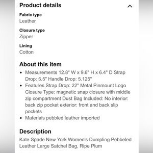 New Kate Spade Dumpling Satchel Bag. Large size. Crossbody strap included. Brand new, never used. 5 sections for storage.