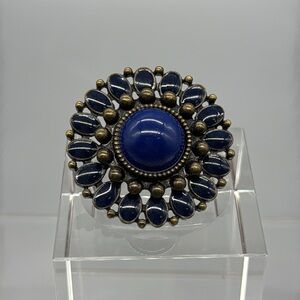 Elegant Blue and Brass Statement Ring