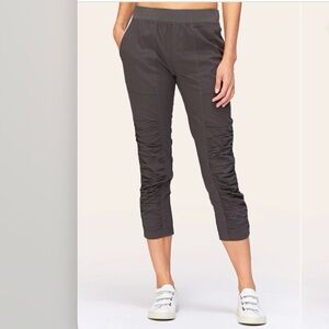 Coral, reddish type shade. Striped. Linen. Lightweight fabric. Cross back straps. Crochet/lace trim straps. Gently used. Size M.