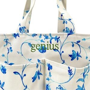 THEE famous Market Tote by Hill House in THEE iconic Botanical print and with custom embroidery on the front that reads "Genius" & makes it a 1-of-1 piece.