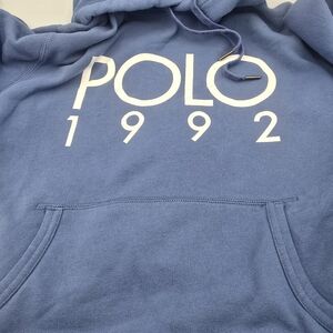 Polo Ralph Lauren 1992 Hoodie Medium Cotton-Blend Logo Fleece Pullover Blue