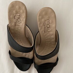 No material tag , bark platform , 2.5 inch heel, soft lining