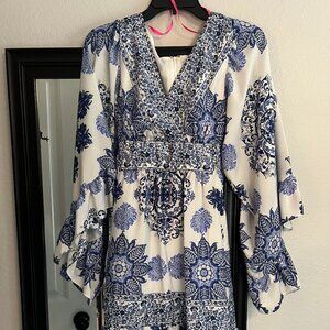 This stunning sundress features a tiered, ruffled design in classic navy & tan, perfect for casual outings. The sleeveless style with a scoop neck offers a comfortable fit, while the flowing maxi-length skirt adds a touch of elegance to your look.