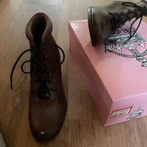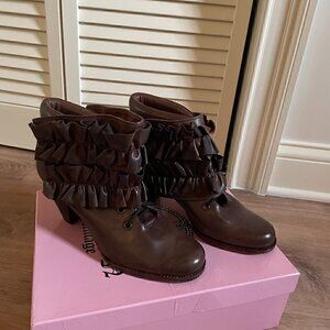 CROWN VINTAGE Brown Leather Ankle Booties with attachable ruffles, NEW, Size 8