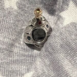 Festive Christmas tree charm by Pandora. Features colorful gemstones. Perfect for holiday jewelry. Great condition. Pictures don’t do it justice. Silver with colored stones and a gold star on top