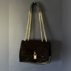 Steve Madden Black Velvet Bag with Gold Chain
