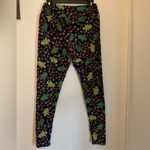 LULAROE Holiday Tree Gift Print Leggings PANTS size Tall & Curvy, Stretch Knit, Black Green Red. Original retail is $25.
