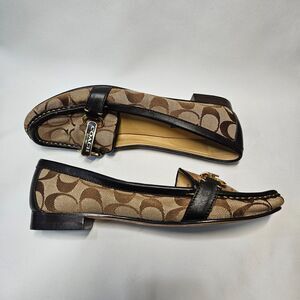 Coach Womens Canvas Leather Monogram Slip On Loafers Size 7.5 Brown Dress Shoes