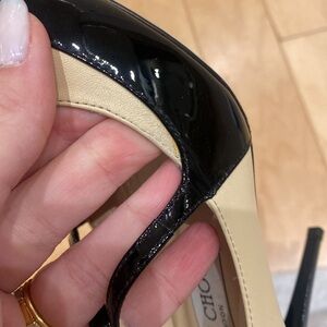 Jimmy Choo Patent Leather 133 Twist Nude Black Buckle Pointed Toe Heels Pumps Size 38 Size 8