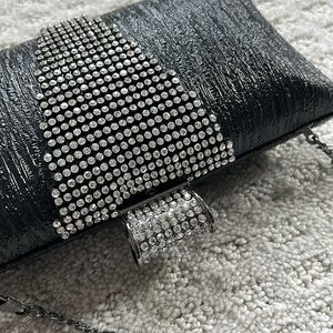 Black clutch purse with chain