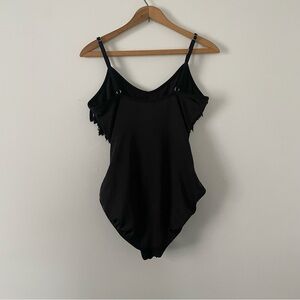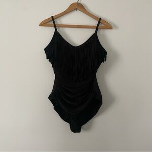 Magic Suit Black Fringe Ruched Shaping One Piece Swimsuit Size 6