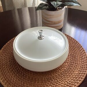 Mid-century modern covered bowl EUC vintage white melamine plastic