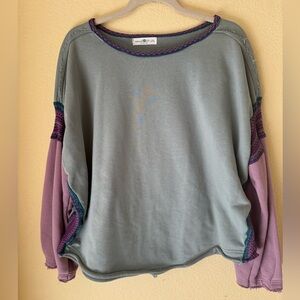Natural Life Knit Trim Distressed Sweatshirt Size L/XL GUC