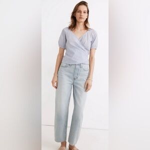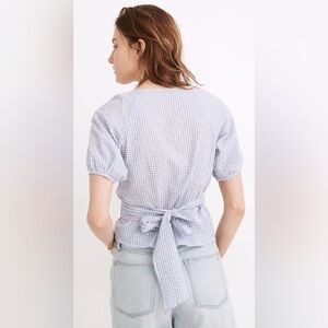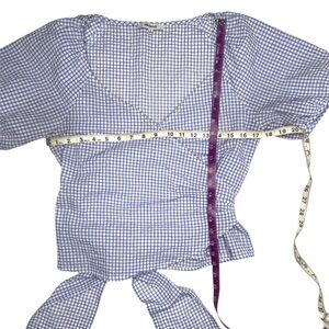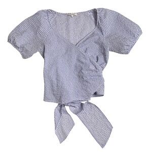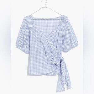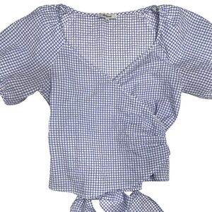 Madewell Blue and White Gingham Seersucker Wrap Top Size Medium