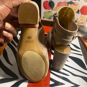 Taupe peep toe ankle booties/sandals. New with tags. No box.