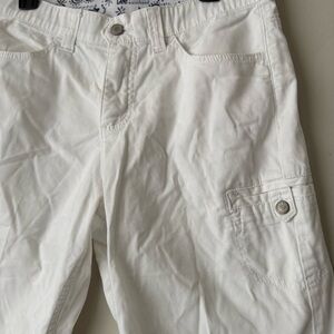 This listing is for one pair of Lee Comfort Waistband Capri pants. They are white, size 12, and have a stretchy waistband. They are gently preowned and feature multiple pockets and a zipper fly. Perfect for casual wear.