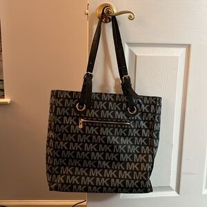 Stylish and versatile, this Michael Kors black tote bag is perfect for any occasion. Featuring the iconic MK logo, it adds a touch of elegance to your outfit. Used, but only shows on the straps