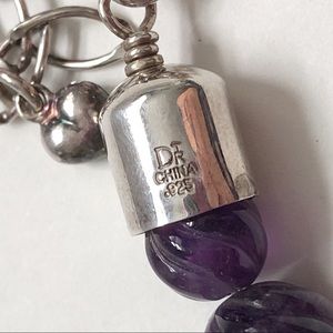 Desert Rose Trading Carved Amethyst Bead Sterling Silver Necklace. Stunning carved amethyst beads with sterling silver beads end caps, extender and clasp. Marked DRT 925. Beads range from 7 mm diameter (near end cap) to 14 mm diameter (center). 17 inches with 3-inch extender.